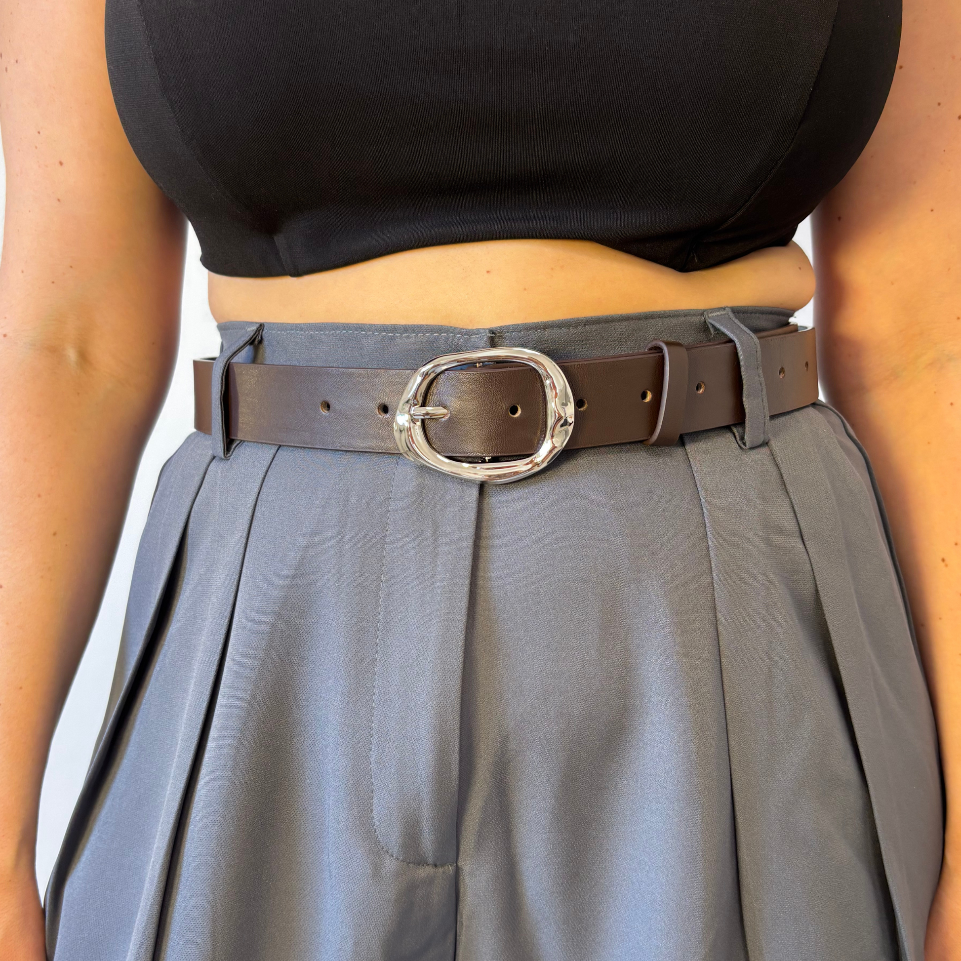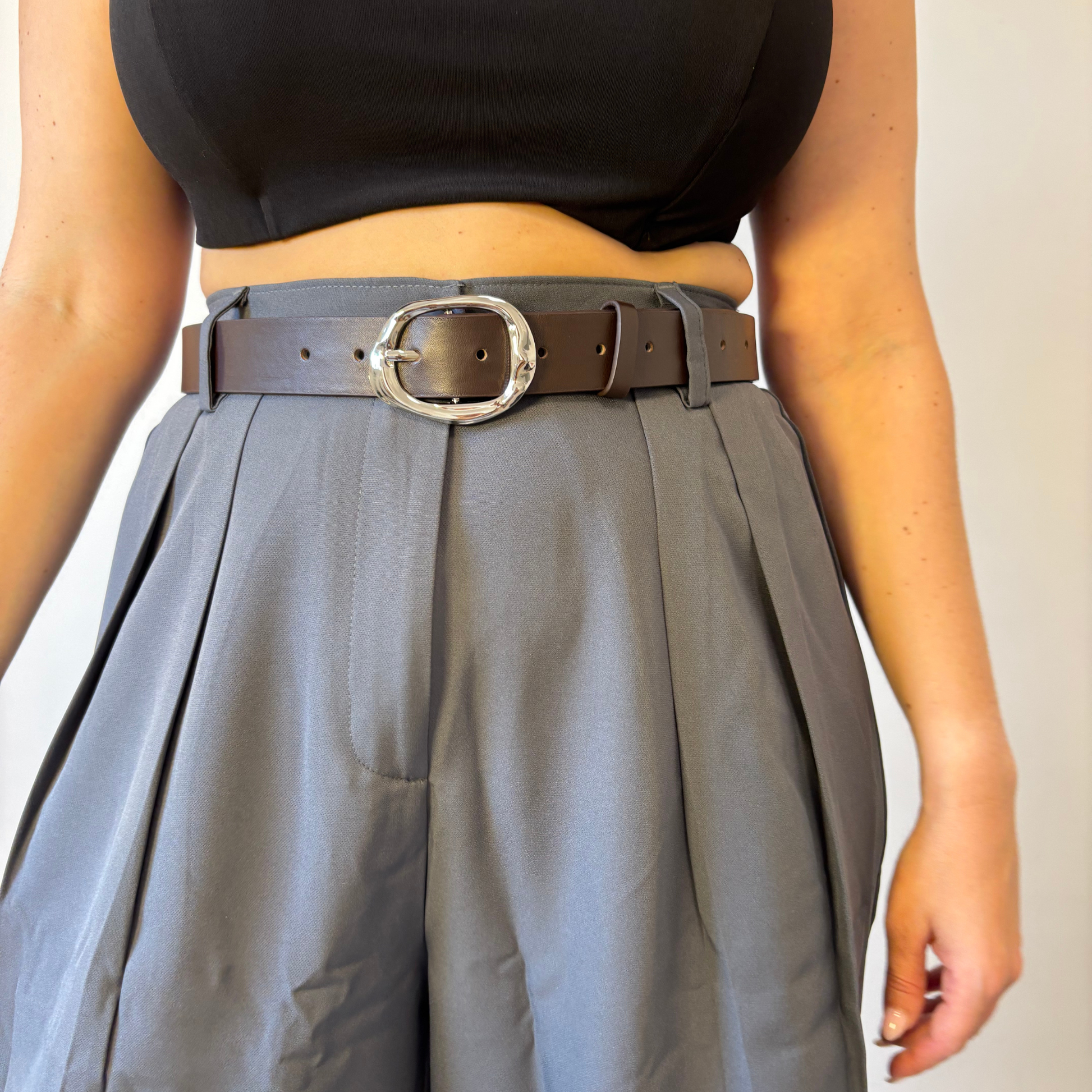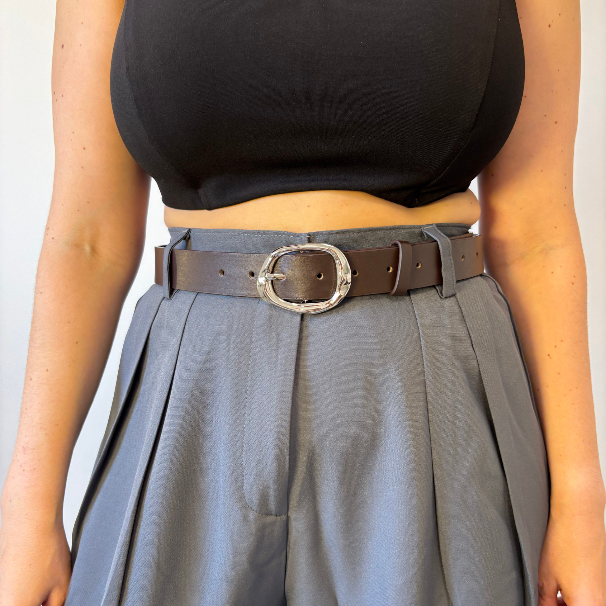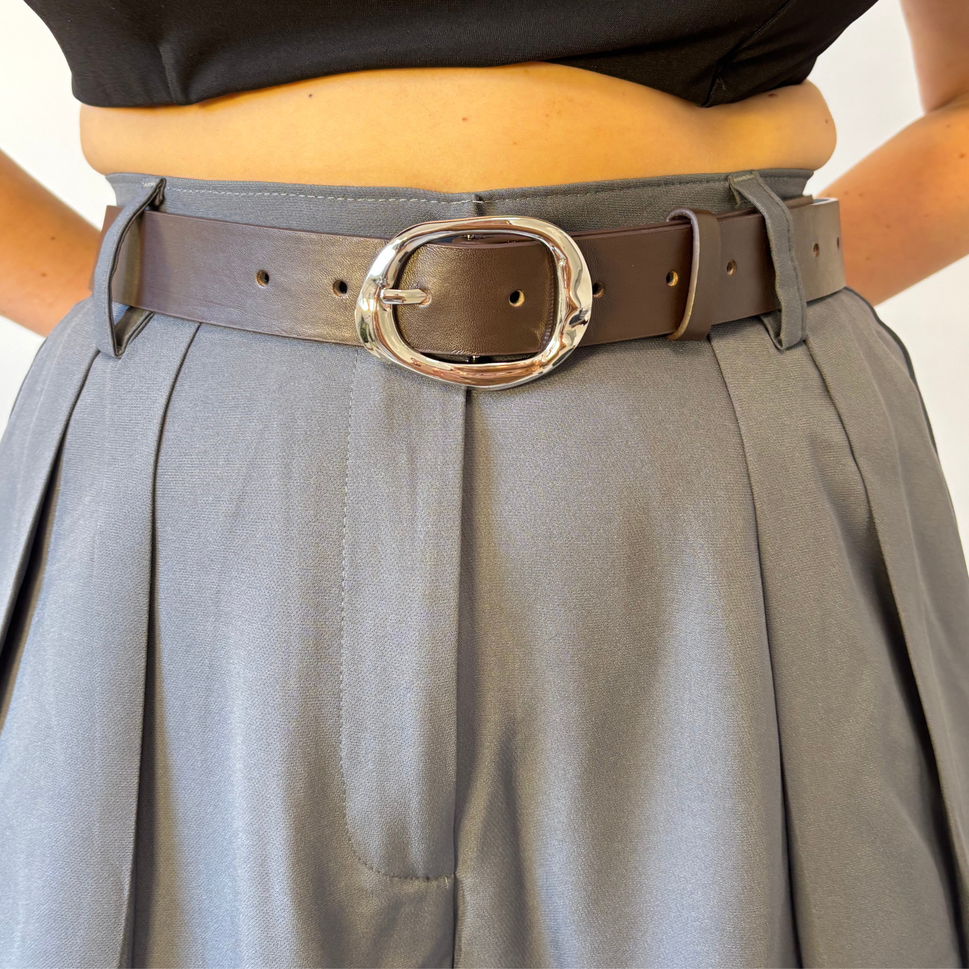 ✅ חגורה דמוי עור, בצבע חום עם אבזם כסוף